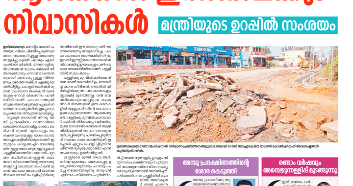 ഠാണാ- ചന്തക്കുന്ന് വികസനം: റോഡു നിര്മാണത്തിലെ മെല്ലെപ്പോക്ക്; പ്രതിഷേധവുമായി വ്യാപാരികളും രാഷ്ട്രീയ കക്ഷികളും സമുദായ സംഘടനകളും