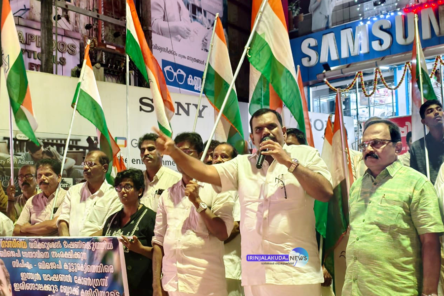 സിപിഎം ബിജെപി കൂട്ടുക്കെട്ടിനെതിരെ ഇന്ത്യന് നാഷണല് കോണ്ഗ്രസ് ഇരിങ്ങാലക്കുട ബ്ലോക്ക് കമ്മിറ്റി പ്രതിഷേധ പ്രകടനം നടത്തി