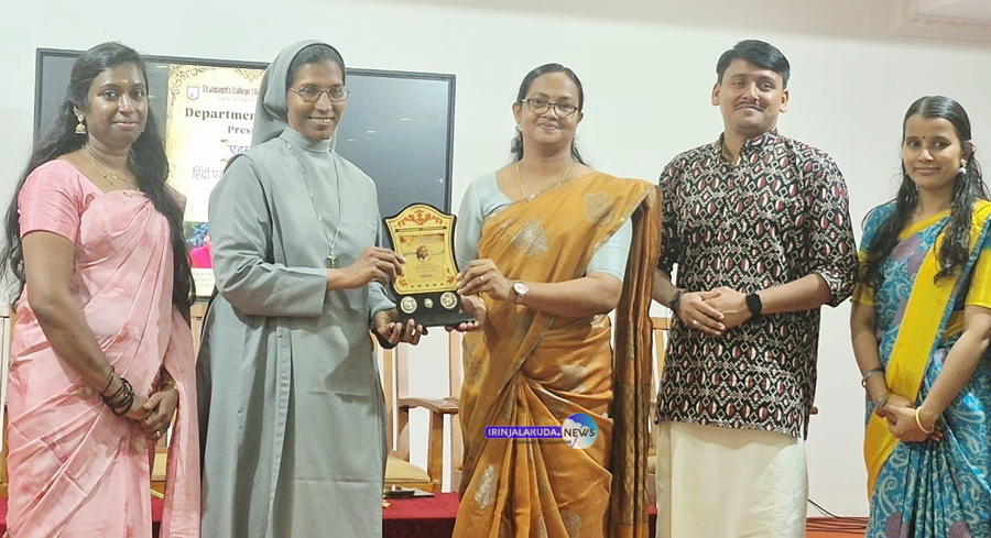 ഇരിങ്ങാലക്കുട: സെന്റ് ജോസഫ്സ് കോളജിലെ ഹിന്ദി വിഭാഗം അസോസിയേഷന് ദിനവും ഹിന്ദി വാരാചരണത്തിന്റെ സമാപനവും ആചരിച്ചു. ചാലക്കുടി പനമ്പിള്ളി മെമ്മോറിയല് ഗവ. കോളജിലെ അസോസിയേറ്റ് പ്രഫസര് ഡോ. ലീന സാമുവല് ഹിന്ദി വാരാചരണത്തിന്റെ സമാപന ചടങ്ങിന്റെ ഉദ്ഘാടനവും അരുവിത്തുറ സെന്റ് ജോര്ജ്ജ് കോളജിലെ അസിസ്റ്റന്റ് പ്രഫസര് കെ.വി. അശ്വിന് നമ്പൂതിരി അസോസിയേഷന് ദിന ഉദ്ഘാടന കര്മ്മം നിര്വ്വഹിച്ചു. ചടങ്ങില് കോളജ് പ്രിന്സിപ്പല് സിസ്റ്റര് ഡോ. ബ്ലെസി അധ്യക്ഷത വഹിച്ചു. പ്രിന്സിപ്പല് സിസ്റ്റര് ഡോ. ബ്ലെസി ഡോ. ലീന സാമുവല്, കെ.വി. അശ്വിന് നമ്പൂതിരി എന്നിവര്ക്കു ഉപഹാരം നല്കി ആദരിച്ചു.