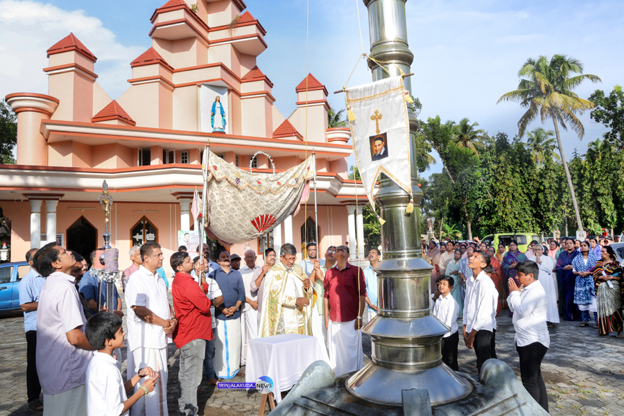 കാട്ടൂര് സെന്റ് മേരീസ് ദൈവാലയത്തിലെ വി. വിന്സെന്റ് ഡി പോളിന്റെ ഊട്ടുതിരുനാളിന് ഫാ. ചെറിയാന് കൊടികയറ്റുന്നു.