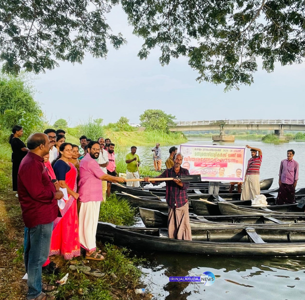 കാറളം പഞ്ചായത്തിന്റെ 2025-26 വാര്ഷിക പദ്ധതിയില് ഉള്പ്പെടുത്തി മത്സ്യ തൊഴിലാളികള്ക്ക് വഞ്ചിയും വലയും നല്കുന്ന ചടങ്ങ് ജില്ലാ പഞ്ചായത്ത് പ്രസിഡന്റ് വി.എസ്. പ്രിന്സ് ഉദ്ഘാടനം ചെയ്യുന്നു.