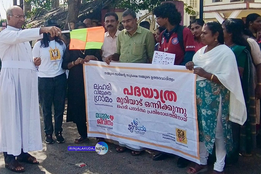 ക്രൈസ്റ്റ് എന്എസ്എസ് വളണ്ടിയേര്സ് ഫ്ളാഷ് മോബും സ്ട്രീറ്റ് പ്ളേയും അവതരിപ്പിച്ചു. സേക്രഡ് ഹാര്ട്ട് ആശുപത്രി അഡ്മിനിസ്ട്രേറ്റര് സിസ്റ്റര് ഫ്ളാറന്സ് സമാപന സന്ദേശം നടത്തി. ഉന്നത വിദ്യാഭ്യാസ സാമൂഹ്യനീതി വകുപ്പ് മന്ത്രി ഡോ. ആര്. ബിന്ദുവിന്റെ നേതൃത്വത്തില് ഇരിങ്ങാലക്കുട മണ്ഡലത്തില് നടക്കുന്ന ലഹരി പ്രതിരോധ പ്രവര്ത്തനം മധുരം ജീവിതം പദ്ധതിയുടെ ഭാഗമായി മുരിയാട് പഞ്ചായത്ത് ജീവധാര മനുഷ്യ ചങ്ങല ഇന്ന് വൈകീട്ട് നാലിന് ടൂറിസം കേന്ദ്രമായ പുല്ലൂര് പൊതുമ്പു ചിറയോരത്ത് സമീപം നടക്കുന്നു.