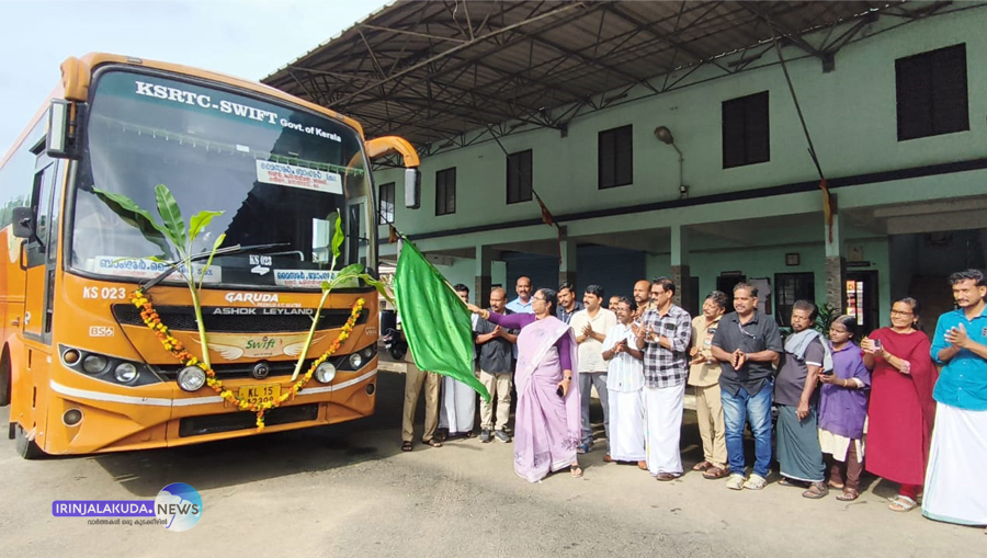 ഇരിങ്ങാലക്കുടയില്നിന്ന് ബാംഗ്ലൂരിലേക്കുള്ള കെഎസ്ആര്ടിസിയുടെ എസി ഗരുഡ ബസ് മന്ത്രി ആര്. ബിന്ദു ഫ്ളാഗ് ഓഫ് ചെയ്യുന്നു.