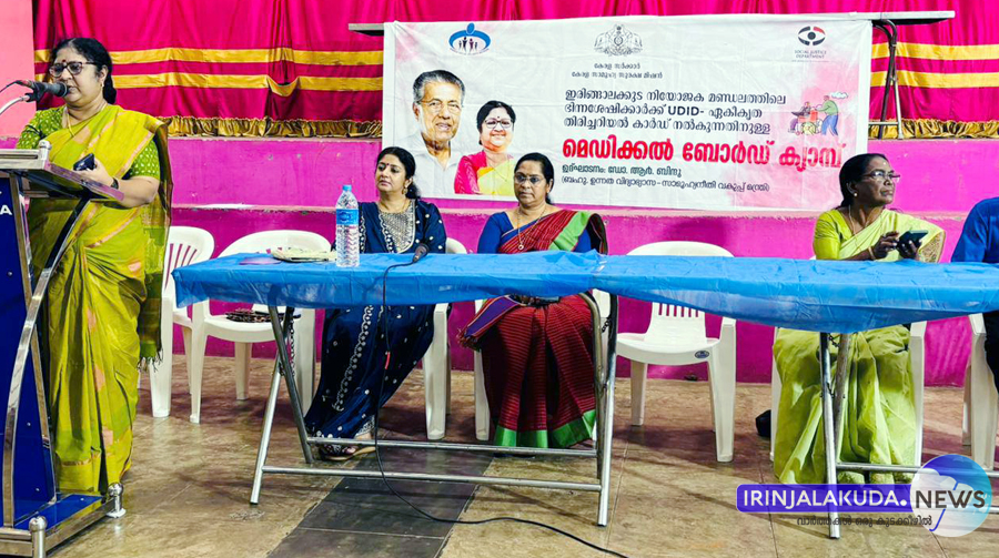 ഇരിങ്ങാലക്കുട മണ്ഡലത്തിലെ ഭിന്നശേഷിക്കാര്ക്ക് ഏകീകൃത തിരിച്ചറിയല് കാര്ഡ് നല്കുന്നതിനായി സംഘടിപ്പിച്ച മെഡിക്കല് ബോര്ഡ് ക്യാമ്പ് മന്ത്രി ഡോ. ആര്. ബിന്ദു ഉദ്ഘാടനം ചെയ്യുന്നു.