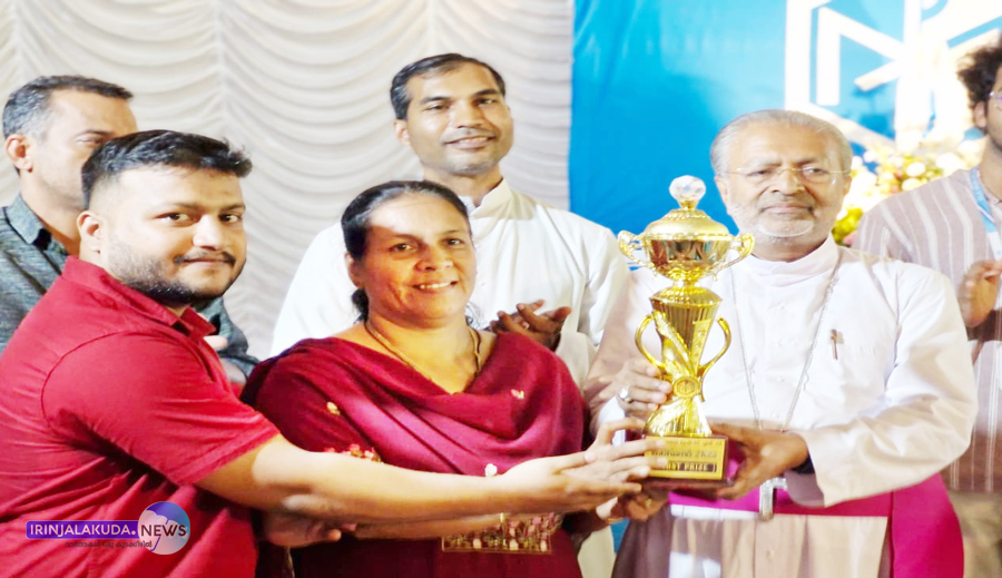 രൂപത സിഎല്സി സംഘടിപ്പിച്ച നാലാമത് അഖില കേരള മരിയന് ക്വിസ് മത്സരത്തില് ഒന്നാം സ്ഥാനം കരസ്ഥമാക്കിയ വെസ്റ്റ് ചാലക്കുടി നിത്യസഹായമാതാ ഇടവകക്ക് ബിഷപ്പ് മാര് പോളി കണ്ണൂക്കാടന് വിജയികള്ക്ക് ട്രോഫി സമ്മാനിക്കുന്നു.