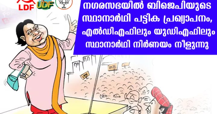 നഗരസഭയില് ബിജെപിയുടെ സ്ഥാനാര്ഥി പട്ടിക പ്രഖ്യാപനം, എല്ഡിഎഫിലും യുഡിഎഫിലും സ്ഥാനാര്ഥി നിര്ണയം നീളുന്നു