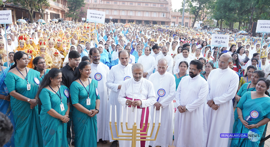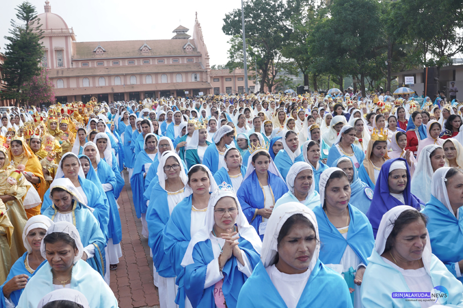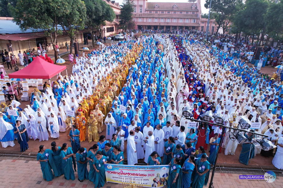 ഇരിങ്ങാലക്കുട: മാതൃത്വത്തിന്റെ വാത്സല്യം നിറഞ്ഞൊഴുകിയ ഒരു അവിസ്മരണീയ മുഹൂര്ത്തത്തിനാണ് ഇരിങ്ങാലക്കുട രൂപത ഇന്നലെ സാക്ഷ്യം വഹിച്ചത്. വരുംതലമുറയ്ക്ക് മാതൃത്വത്തിന്റെ മഹത്വത്തെക്കുറിച്ചുള്ള ഉദാത്തമായ സന്ദേശം നല്കുന്ന ചരിത്രപരമായ ഒരു സംഭവമായിരുന്നു ഇത്. 2025 മഹാജൂബിലി വര്ഷത്തോടനുബന്ധിച്ച് മാതാവിനോടൊപ്പം ടുകെ25 എന്ന പേരില് ഇരിങ്ങാലക്കുട രൂപത മാതൃവേദി സംഘടിപ്പിച്ച ഈ പരിപാടിയില് ഒരേ സമയം 2025 അമ്മമാര് പരിശുദ്ധ കന്യകാമറിയത്തിന്റെ വേഷധാരികളായി അണിനിരന്നപ്പോള് അത് സ്നേഹത്തിന്റെയും ത്യാഗത്തിന്റെയും ദീപ്തമായ ഒരു ദൃശ്യവിരുന്നായി മാറി.