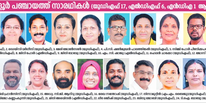 ആളൂര് പഞ്ചായത്ത് സാരഥികള് (എല്ഡിഎഫ് 06, യുഡിഎഫ് 17, എന്ഡിഎ 1, ആകെ 24)
