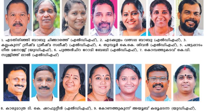 ഇരിങ്ങാലക്കുട ബ്ലോക്ക് പഞ്ചായത്ത് സാരഥികള് (എല്ഡിഎഫ് 11, യുഡിഎഫ് 2, എന്ഡിഎ 1, ആകെ 14)