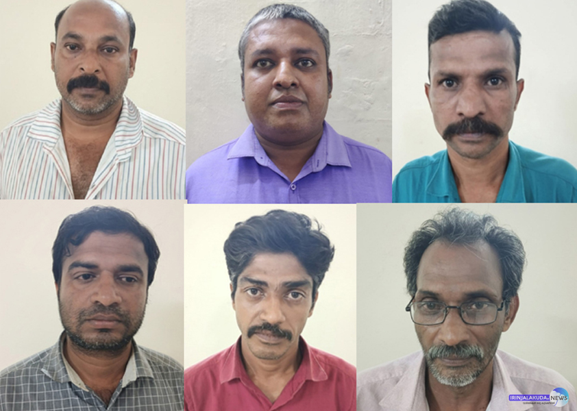 പ്രതി തിലകന് (53), പ്രതി ജിന്റോ (33), പ്രതി സജീവന് (45), പ്രതി ജിനോ (40), പ്രതി ധനേഷ് (39), പ്രതി ജോര്ജ്ജ് (60).