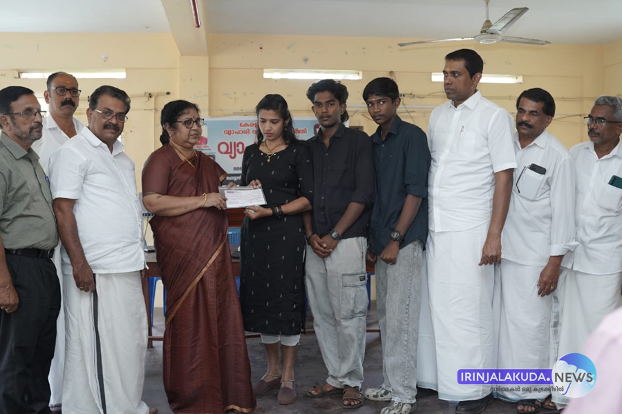 ഇരിങ്ങാലക്കുട വ്യാപാരി മിത്ര ധനസഹായം മന്ത്രി ആര്. ബിന്ദു കൈമാറുന്നു.