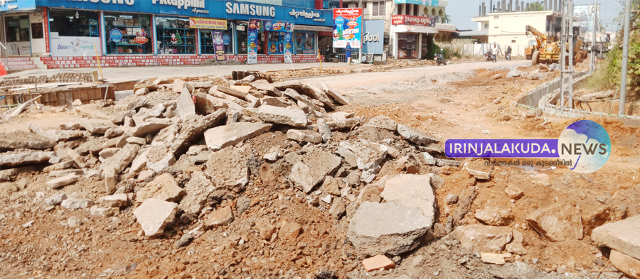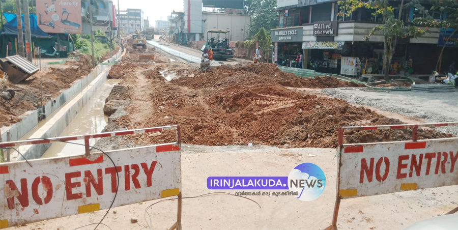 ഇരിങ്ങാലക്കുട പൂതംകുളം ജംഗ്ഷനില് നിര്മാണ പ്രവര്ത്തനങ്ങളുടെ ഭാഗമായി റോഡ് അടച്ചുകെട്ടിയ നിലയില്.