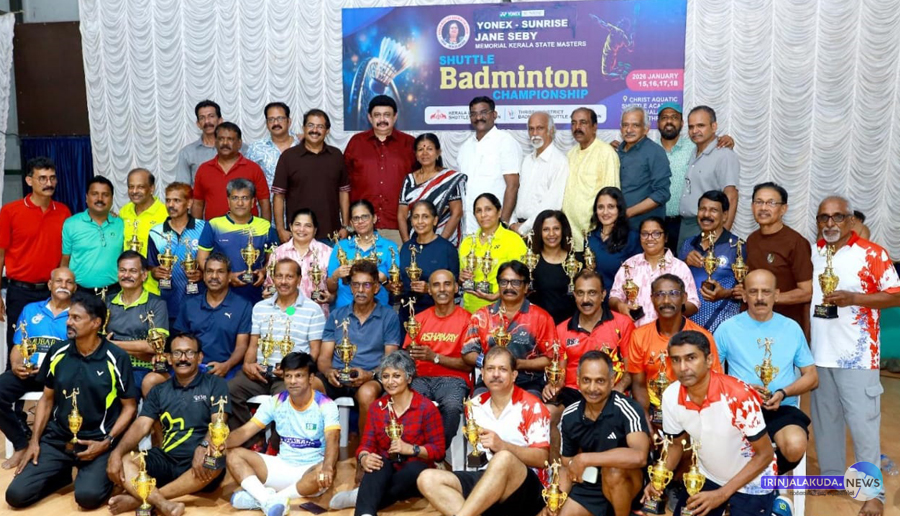 ഇരിങ്ങാലക്കുട ക്രൈസ്റ്റ് അക്വാറ്റിക് ഷട്ടില് അക്കാദമിയില് നടന്ന യോനക്സ്- സണ്റൈസ് ജെയിന് സെബി മെമ്മോറിയല് കേരള സ്റ്റേറ്റ് മാസ്റ്റേഴ്സ് ബാഡ്മിന്റന് ചാംപ്യന്ഷിപ്പില് ജേതാക്കളായവര്.