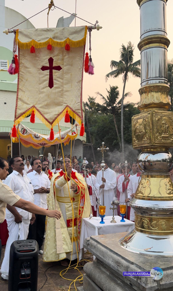 അവിട്ടത്തൂര് തിരുകുടുംബ ദേവാലയത്തില് തിരുനാളിന് വികാരി ഫാ. റെനില് കാരാത്ര കൊടിയേറ്റുന്നു.