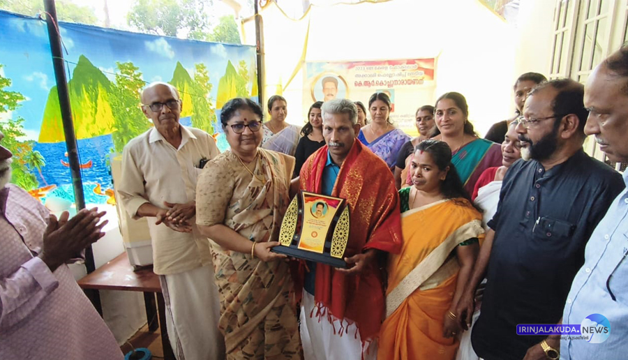 കേരള സംഗീത നാടക അക്കാദമിയുടെ ഫെലോഷിപ്പും അക്കാദമി അവാര്ഡും നേടിയ കൂടിയാട്ടം കലാകാരന് വേണുജിയെ ഇരിങ്ങാലക്കുട നഗരസഭ ചെയര്മാന് എം.പി ജാക്സന് പൊന്നടയണിയിച്ച് ആദരിക്കുന്നു.