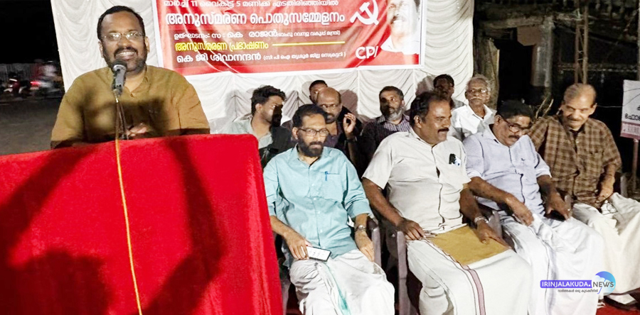 സിപിഐ സംസ്ഥാന സെക്രട്ടേറിയറ്റ് അംഗം കെ.കെ. വത്സരാജ്, മുതിര്ന്ന നേതാവ് കെ. ശ്രീകുമാര്, സംസ്ഥാന കൗണ്സില് അംഗം ടി.കെ. സുധീഷ്, സിപിഐ ഇരിങ്ങാലക്കുട മണ്ഡലം സെക്രട്ടറി എ.കെ. ഉദയപ്രകാശ്, എഐവൈഎഫ് ജില്ലാ പ്രസിഡന്റ് ബിനോയ് ഷബീര്, എഐഎസ്എഫ് ജില്ലാ സെക്രട്ടറി മിഥുന് പോട്ടക്കാരന്, കെ.വി. രാമകൃഷ്ണന്, കെ.പി. കണ്ണന്, മുരളി മണക്കാട്ടുംപടി, വി.ആര്. രമേഷ്, ടി.വി. വിബിന് എന്നിവര് സംസാരിച്ചു.