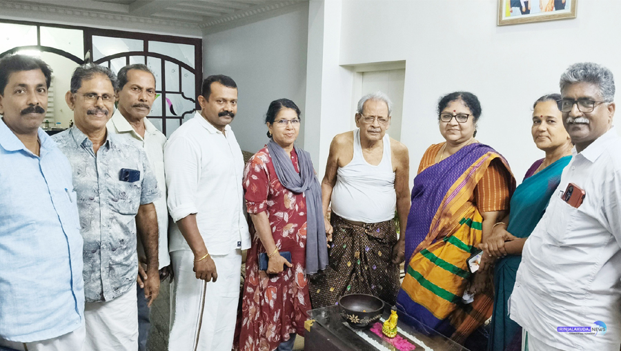 എല്ഡിഎഫ് സ്ഥനാര്ഥി ആര്. ബിന്ദു മുതിര്ന്ന സിപിഎം നേതാവ് പോള് കോക്കാട്ടിനെ സന്ദര്ശിച്ച് അനുഗ്രഹം വാങ്ങുന്നു.