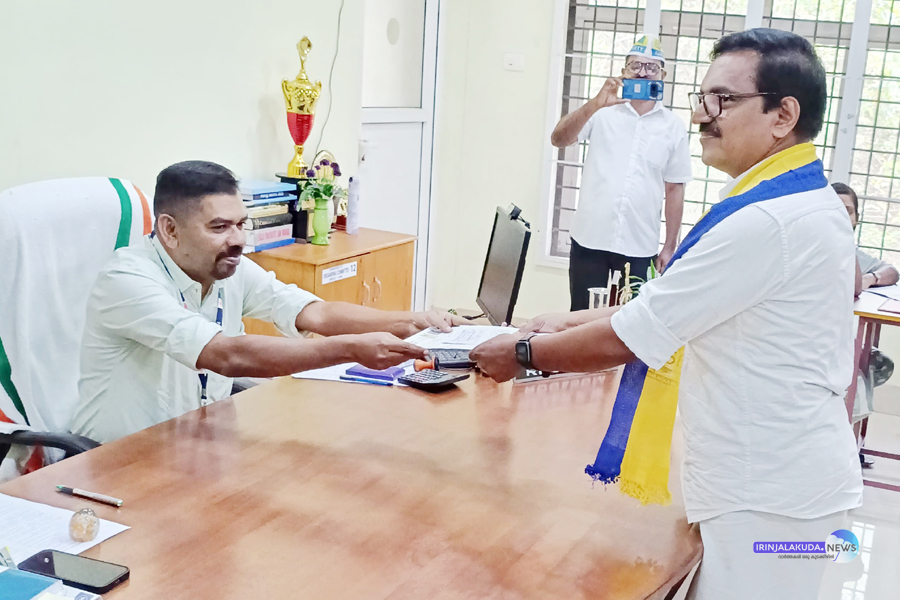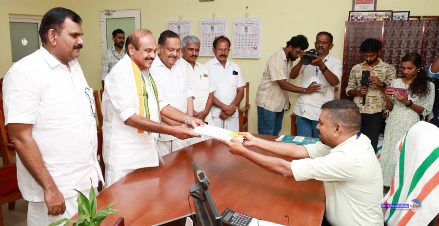 ഇരിങ്ങാലക്കുട യുഡിഎഫ് സ്ഥാനാര്ഥി അഡ്വ. തോമസ് ഉണ്ണിയാടന് നാമനിര്ദേശ പത്രിക സമര്പ്പിക്കുന്നു. നഗരസഭ ചെയര്മാന് എം.പി. ജാക്സണ്, ഡിസിസി സെക്രട്ടറിമാരായ ആന്റോ പെരുമ്പുള്ളി, സതീഷ് വിമലന്, ബ്ലോക്ക്് പ്രസിഡന്റ് ഷാറ്റൊ കുര്യന് എന്നിവര് സമീപം.