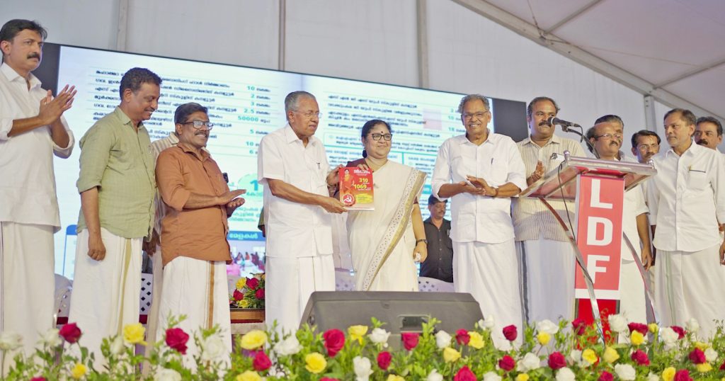 മണ്ഡലം വികസന രേഖ പിണറായി പ്രകാശനം ചെയ്തു. സിപിഐ എം സംസ്ഥാന സെക്രട്ടറിയറ്റ് അംഗം പി.കെ. ബിജു, സിപിഐ ജില്ലാ സെക്രട്ടറി കെ.ജി. ശിവാനന്ദന്, കേരള കോണ്ഗ്രസ് (എം) മണ്ഡലം പ്രസിഡന്റ് ടി.കെ. വര്ഗീസ്, എന്സിപി സംസ്ഥാന സെക്രട്ടറി രഘു കെ. മാരാത്ത്, ആര്ജെഡി ജില്ലാ പ്രസിഡന്റ് ജെയ്സണ് മാണി, കോണ്ഗ്രസ് എസ് ജില്ലാ പ്രസിഡന്റ് സി.ആര്. വത്സന്, ഐഎസ്ജെഡി മണ്ഡലം പ്രസിഡന്റ് രാജു പാലത്തിങ്കല്, ഐഎന്എല് മണ്ഡലം പ്രസിഡന്റ് റഷീദ് കാട്ടൂര്, കേരള കോണ്ഗ്രസ് ബി സംസ്ഥാന കമ്മിറ്റി അംഗം അഡ്വ. അരുണ്കുമാര് എന്നിവര് പ്രസംഗിച്ചു. തെരഞ്ഞെടുപ്പ് കമ്മിറ്റി കണ്വീനര് ഉല്ലാസ് കളക്കാട്ട് സ്വാഗതവും സിപിഎം ഏരിയ സെക്രട്ടറി വി.എ. മനോജ് കുമാര് നന്ദിയും പറഞ്ഞു.
