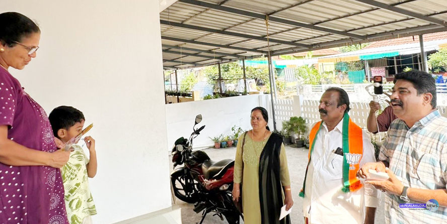 ഇരിങ്ങാലക്കുട: എന്ഡിഎ സ്ഥാനാര്ഥി സന്തോഷ് ചെറാക്കുളം ഷണ്മുഖം കനാല് കോളനി, ഇരിങ്ങാലക്കുട സെന്റ് ജോസഫ്സ് കോളജ്, സെന്റ് ജോസഫ്സ് കന്യാസ്ത്രീ മഠം, കെപില് വെളിച്ചെണ്ണ കമ്പനി, അക്കര ടെക്സ്റ്റൈല്സ്, സേവാഭാരതി
