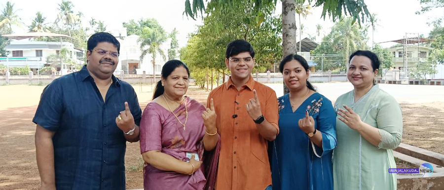 ഇരിങ്ങാലടക്കുട: ചലച്ചിത്ര താരവും മുന് എംപിയും ചലച്ചിത്ര താരവുമായ ഇന്നസെന്റിന്റെ പേരക്കുട്ടി ജൂനിയര് ഇന്നസെന്റ് കുടുംബത്തോടൊപ്പം ഡോണ്ബോസ്കോ സ്കൂളില് വോട്ടു രേഖപ്പെടുത്തിയശേഷം ചൂണ്ടുവിരല് ഉയര്ത്തികാട്ടുന്നു.