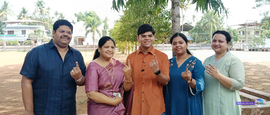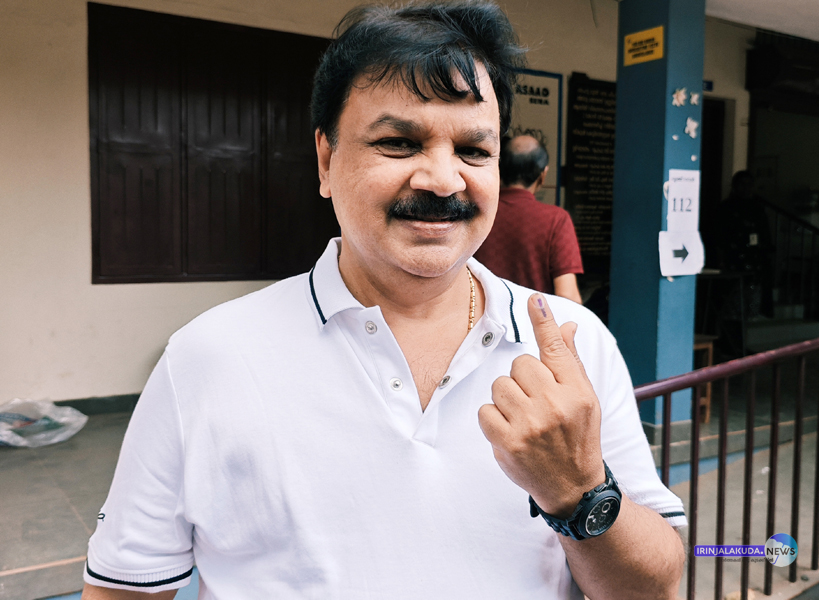 ഇരിങ്ങാലടക്കുട: ചലച്ചിത്ര താരം ഇടവേള ബാബു ഇരിങ്ങാലക്കുട ഗവ. ഗേള്സ് സ്കൂളില് വോട്ടു രേഖപ്പെടുത്തിയ ശേഷം ചൂണ്ടുവിരല് ഉയര്ത്തികാട്ടുന്നു.