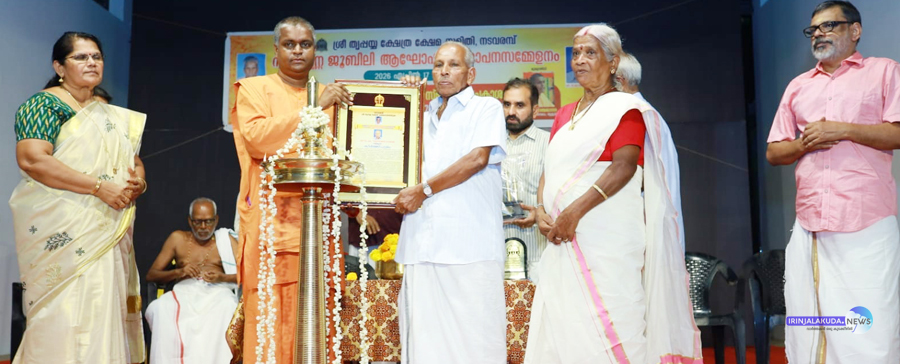 നടവരമ്പ്: നടവരമ്പ് തൃപ്പയ്യ ക്ഷേത്ര ക്ഷേമ സമിതി ഗോപാല മാരാര് സ്മാരക പുരസ്കാരം നളിന രാജന് മാരാര്ക്ക് സ്വാമി നന്ദാത്മജാനന്ദ സമ്മാനിക്കുന്നു.