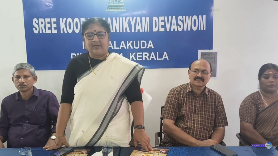 കൂടല്മാണിക്യം ഉത്സവത്തിന് മുന്നോടിയായി നടന്ന അവലോകന യോഗത്തില് മന്ത്രി ഡോ.ആര്. ബിന്ദു സംസാരിക്കുന്നു.
