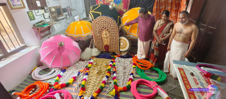 ഇരിങ്ങാലക്കുട: ഉത്സവത്തിനോടനുബന്ധിച്ചുള്ള പകല് ശീവലിയും രാത്രി വിളക്കെഴുന്നള്ളിപ്പും അവിസ്മരണീയമാക്കുവാന് ആനച്ചമയങ്ങളുടെ പണികള് പൂര്ത്തിയായി. ഗജവീരന്മാര്ക്ക് അണിയാന് സ്വര്ണകോലവും വെള്ളിപിടികളോടു കൂടിയുള്ള വെണ്ചാമരങ്ങളും തനി തങ്ക നെറ്റിപ്പട്ടങ്ങളും പീലിയുടെ ഭംഗി പൂര്ണമായും ആവാഹിച്ച ആലവട്ടങ്ങളും കഴുത്തിലും കൈകളിലും അണിയുന്ന മണികളുമാണ് തയാറായിട്ടുള്ളത്.
